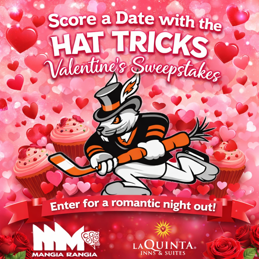Hockey meets romance as the Hat Tricks launch a Valentine’s sweepstakes featuring game tickets, dinner, a hotel stay, and more.